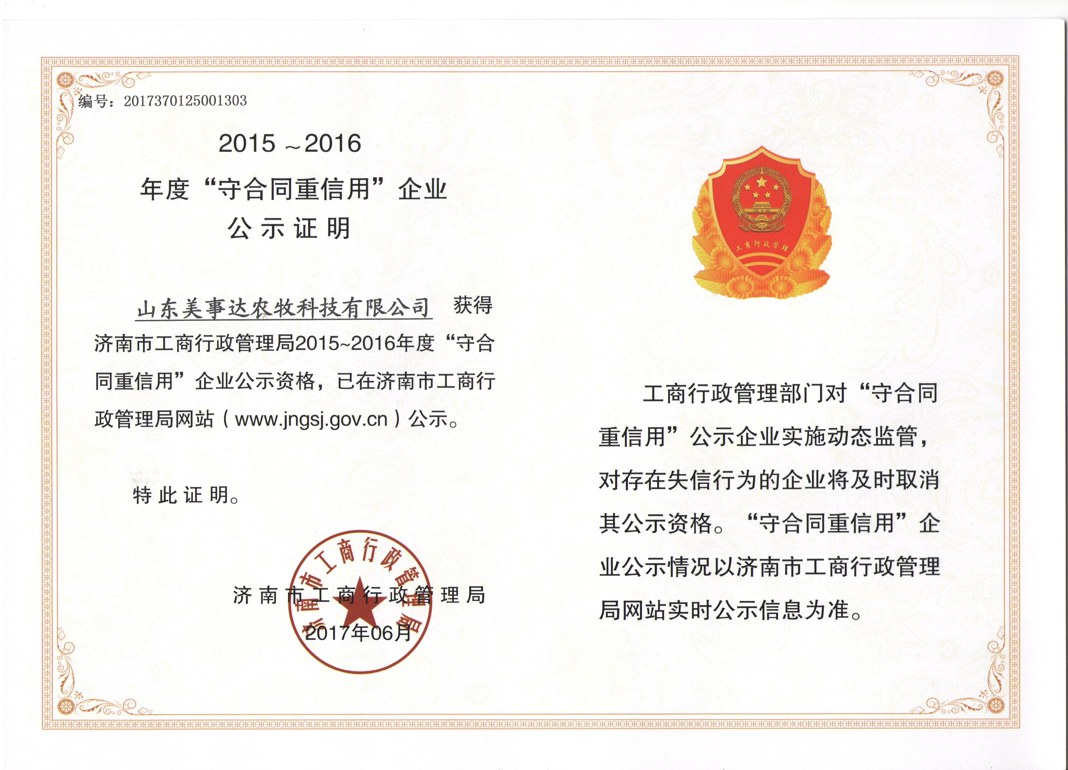 熱烈祝賀我公司獲評(píng)濟(jì)南市2015-2016年度守合同重信用企業(yè)!