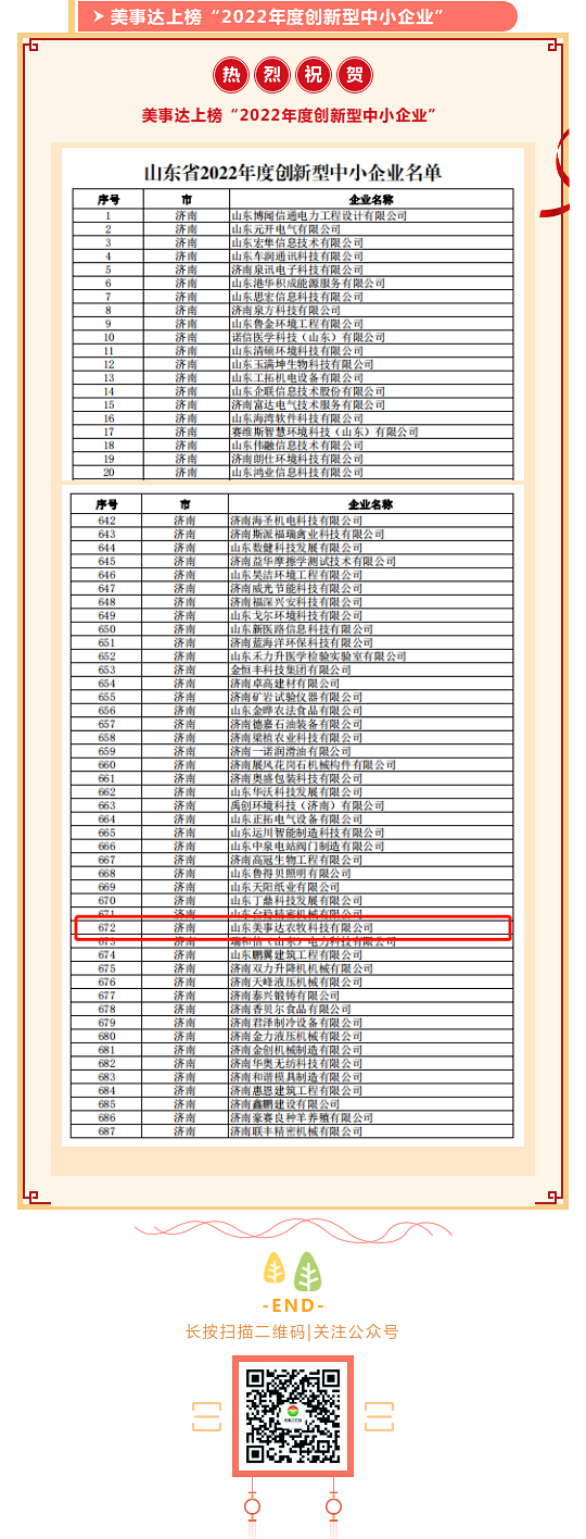 美事達(dá)上榜“2022年度創(chuàng)新型中小企業(yè)”